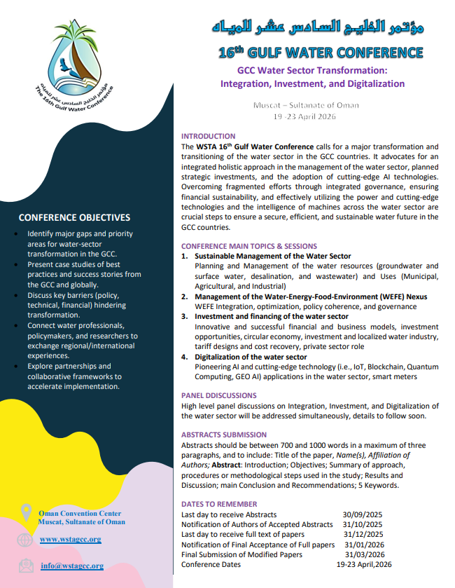 Details at 16th Gulf Water Conference